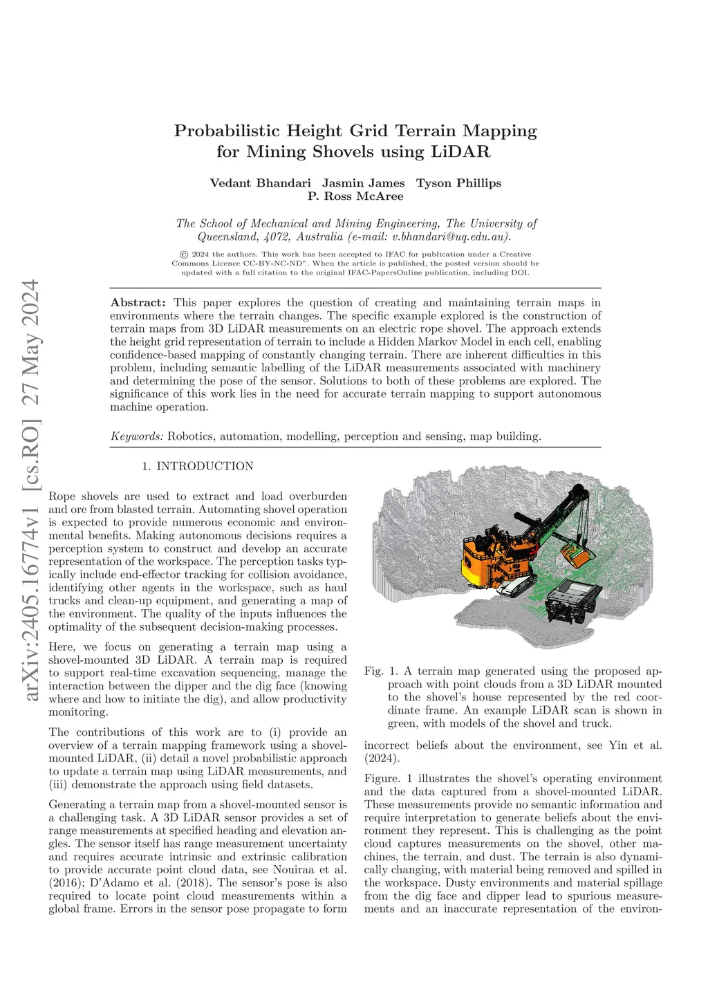 Probabilistic Height Grid Terrain Mapping for Mining Shovels using LiDAR