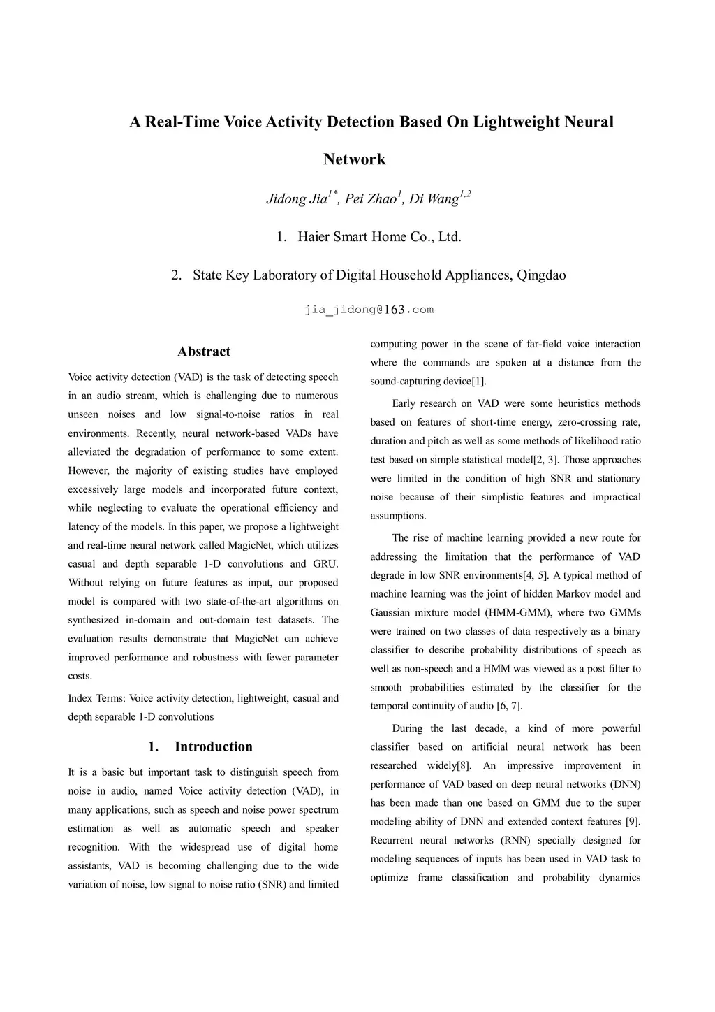 A Real-Time Voice Activity Detection Based On Lightweight Neural