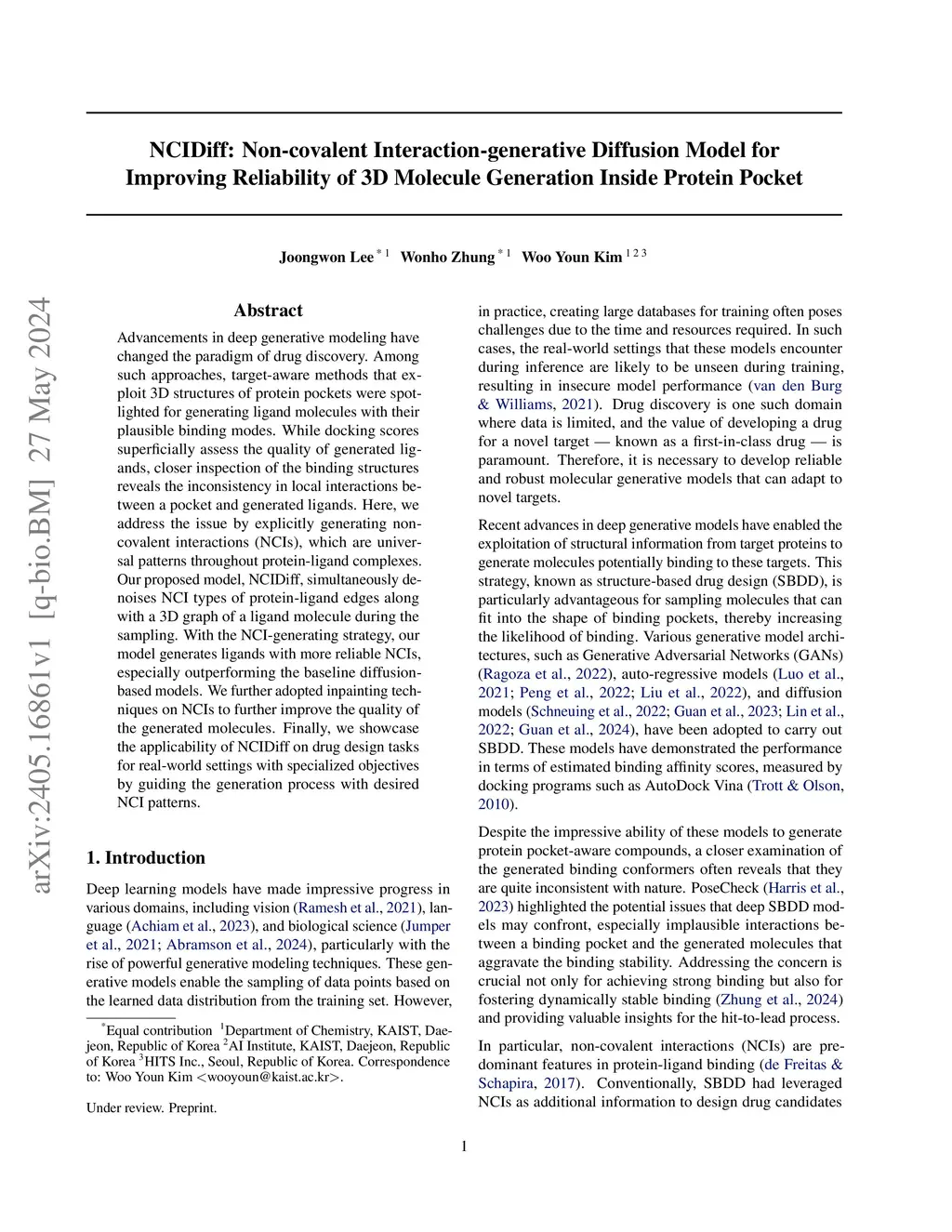 Recent remarkable advancements in geometric deep generative models, coupled with accumulated structural data, enable structure-based drug design (SBDD) using only target protein information. However, existing models often struggle to balance multiple objectives, excelling only in specific tasks. BInD, a diffusion model with knowledge-based guidance, is introduced to address this limitation by co-generating molecules and their interactions with a target protein. This approach ensures balanced consideration of key objectives, including target-specific interactions, molecular properties, and local geometry. Comprehensive evaluations demonstrate that BInD achieves robust performance across all objectives, matching or surpassing state-of-the-art methods. Additionally, an NCI-driven molecule design and optimization method is proposed, enabling the enhancement of target binding and specificity by elaborating the adequate interaction patterns.
