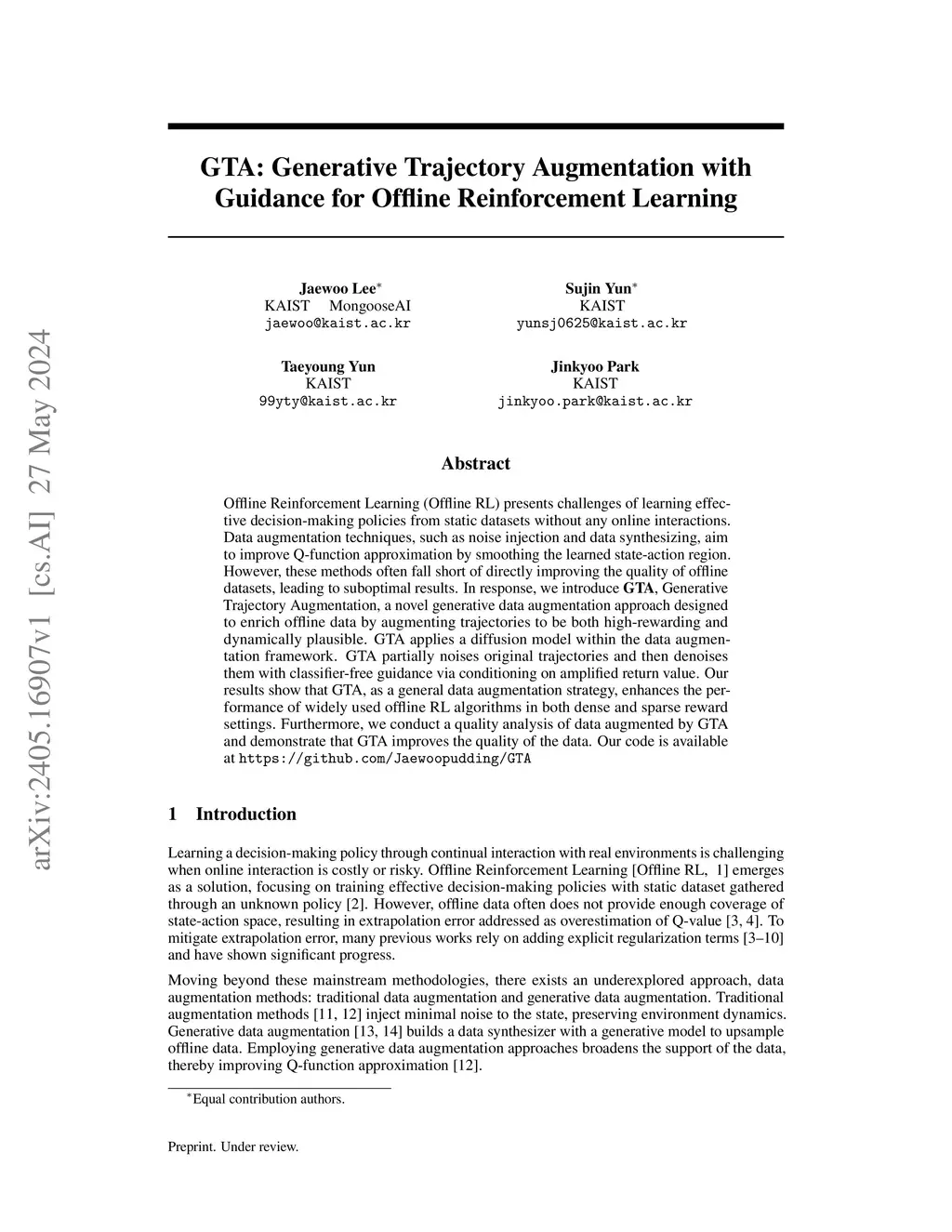 GTA: Generative Trajectory Augmentation with Guidance for Offline