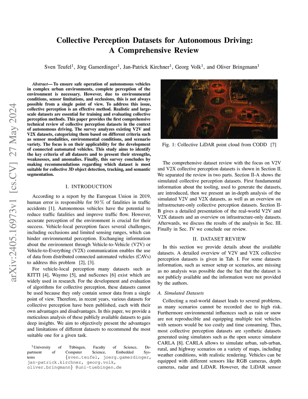 Collective Perception Datasets for Autonomous Driving: A Comprehensive