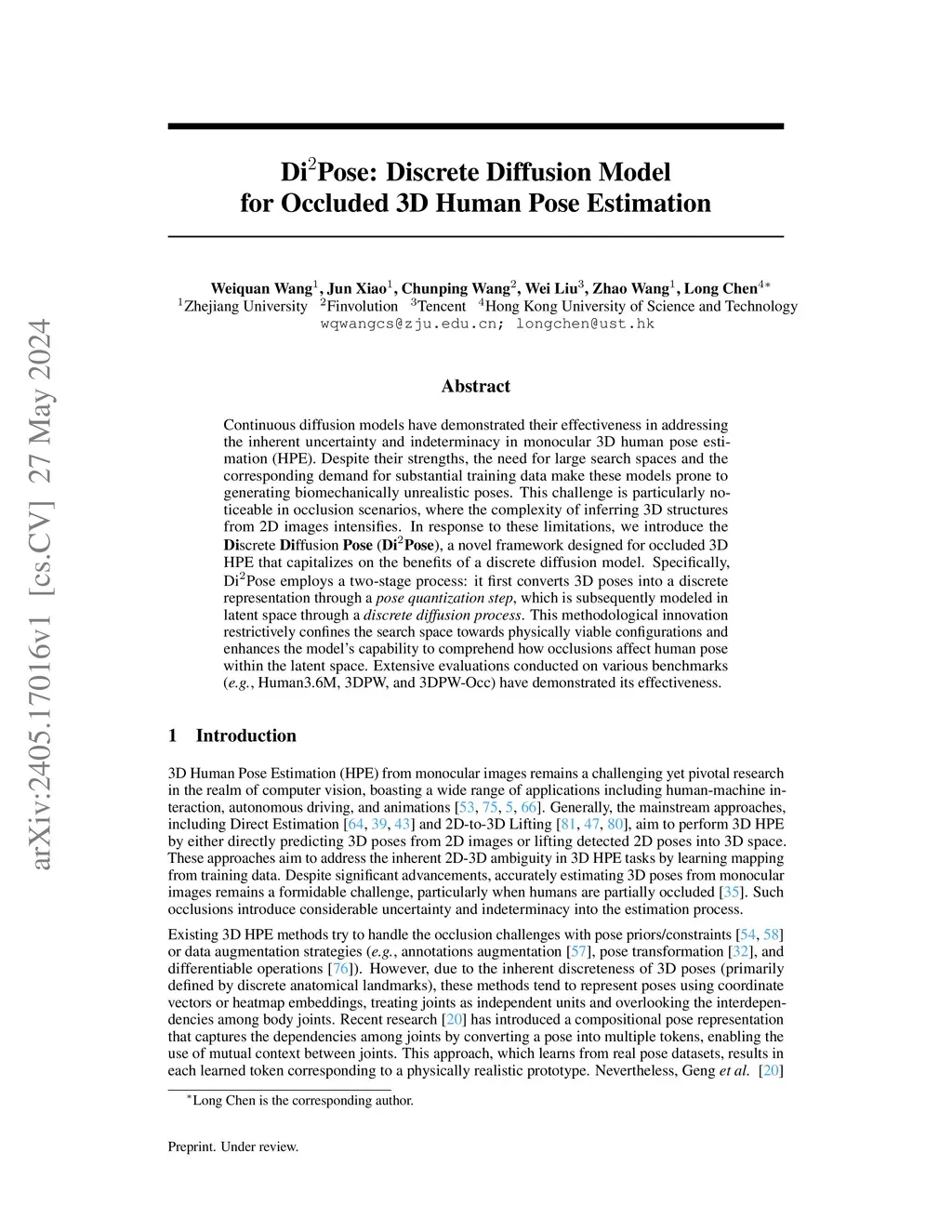 Continuous diffusion models have demonstrated their effectiveness in addressing the inherent uncertainty and indeterminacy in monocular 3D human pose estimation (HPE). Despite their strengths, the need for large search spaces and the corresponding demand for substantial training data make these models prone to generating biomechanically unrealistic poses. This challenge is particularly noticeable in occlusion scenarios, where the complexity of inferring 3D structures from 2D images intensifies. In response to these limitations, we introduce the Discrete Diffusion Pose (), a novel framework designed for occluded 3D HPE that capitalizes on the benefits of a discrete diffusion model. Specifically, employs a two-stage process: it first converts 3D poses into a discrete representation through a \emph{pose quantization step}, which is subsequently modeled in latent space through a \emph{discrete diffusion process}. This methodological innovation restrictively confines the search space towards physically viable configurations and enhances the model's capability to comprehend how occlusions affect human pose within the latent space. Extensive evaluations conducted on various benchmarks (e.g., Human3.6M, 3DPW, and 3DPW-Occ) have demonstrated its effectiveness.