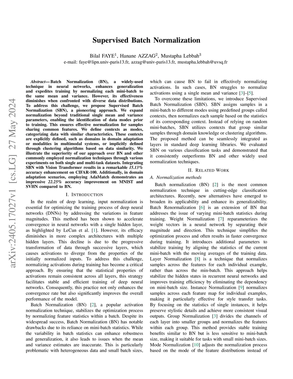 Batch Normalization (BN), a widely-used technique in neural networks, enhances generalization and expedites training by normalizing each mini-batch to the same mean and variance. However, its effectiveness diminishes when confronted with diverse data distributions. To address this challenge, we propose Supervised Batch Normalization (SBN), a pioneering approach. We expand normalization beyond traditional single mean and variance parameters, enabling the identification of data modes prior to training. This ensures effective normalization for samples sharing common features. We define contexts as modes, categorizing data with similar characteristics. These contexts are explicitly defined, such as domains in domain adaptation or modalities in multimodal systems, or implicitly defined through clustering algorithms based on data similarity. We illustrate the superiority of our approach over BN and other commonly employed normalization techniques through various experiments on both single and multi-task datasets. Integrating SBN with Vision Transformer results in a remarkable \textit{15.13}\% accuracy enhancement on CIFAR-100. Additionally, in domain adaptation scenarios, employing AdaMatch demonstrates an impressive \textit{22.25}\% accuracy improvement on MNIST and SVHN compared to BN.