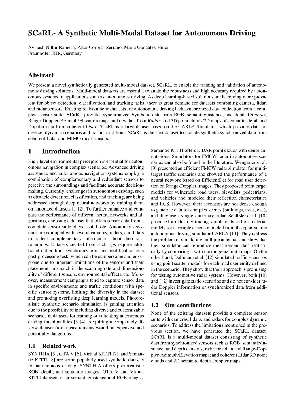SCaRL- A Synthetic Multi-Modal Dataset for Autonomous Driving