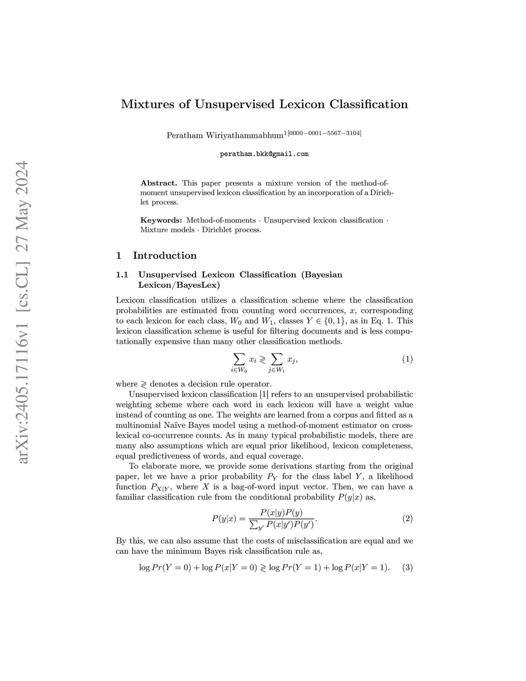 Mixtures of Unsupervised Lexicon Classification