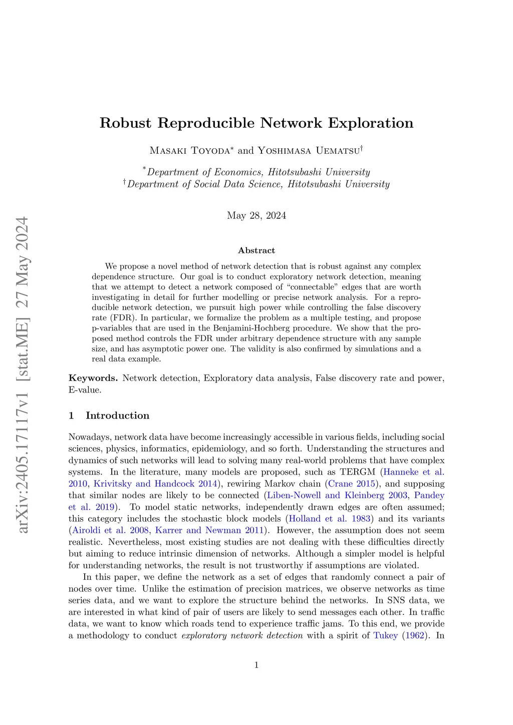 We propose a novel method of network detection that is robust against any complex dependence structure. Our goal is to conduct exploratory network detection, meaning that we attempt to detect a network composed of ``connectable'' edges that are worth investigating in detail for further modelling or precise network analysis. For a reproducible network detection, we pursuit high power while controlling the false discovery rate (FDR). In particular, we formalize the problem as a multiple testing, and propose p-variables that are used in the Benjamini-Hochberg procedure. We show that the proposed method controls the FDR under arbitrary dependence structure with any sample size, and has asymptotic power one. The validity is also confirmed by simulations and a real data example.