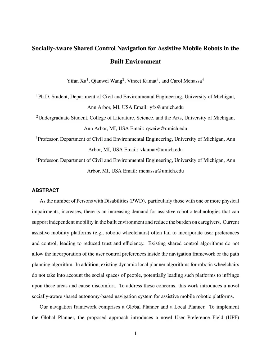 As the number of Persons with Disabilities (PWD), particularly those with one or more physical impairments, increases, there is an increasing demand for assistive robotic technologies that can support independent mobility in the built environment and reduce the burden on caregivers. Current assistive mobility platforms (e.g., robotic wheelchairs) often fail to incorporate user preferences and control, leading to reduced trust and efficiency. Existing shared control algorithms do not allow the incorporation of the user control preferences inside the navigation framework or the path planning algorithm. In addition, existing dynamic local planner algorithms for robotic wheelchairs do not take into account the social spaces of people, potentially leading such platforms to infringe upon these areas and cause discomfort. To address these concerns, this work introduces a novel socially-aware shared autonomy-based navigation system for assistive mobile robotic platforms. Our navigation framework comprises a Global Planner and a Local Planner. To implement the Global Planner, the proposed approach introduces a novel User Preference Field (UPF) theory within its global planning framework, explicitly acknowledging user preferences to adeptly navigate away from congested areas. For the Local Planner, we propose a Socially-aware Shared Control-based Model Predictive Control with Dynamic Control Barrier Function (SS-MPC-DCBF) to adjust movements in real-time, integrating user preferences for safer, more autonomous navigation. Evaluation results show that our Global Planner aligns closely with user preferences compared to baselines, and our Local Planner demonstrates enhanced safety and efficiency in dynamic and static scenarios. This integrated approach fosters trust and autonomy, crucial for the acceptance of assistive mobility technologies in the built environment.