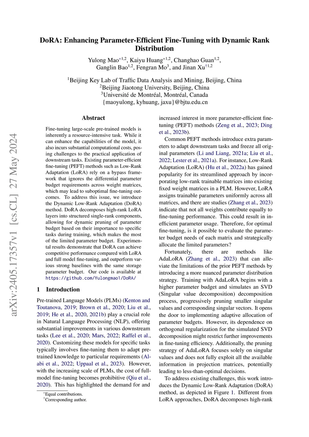 DoRA: Enhancing Parameter-Efficient Fine-Tuning with Dynamic Rank