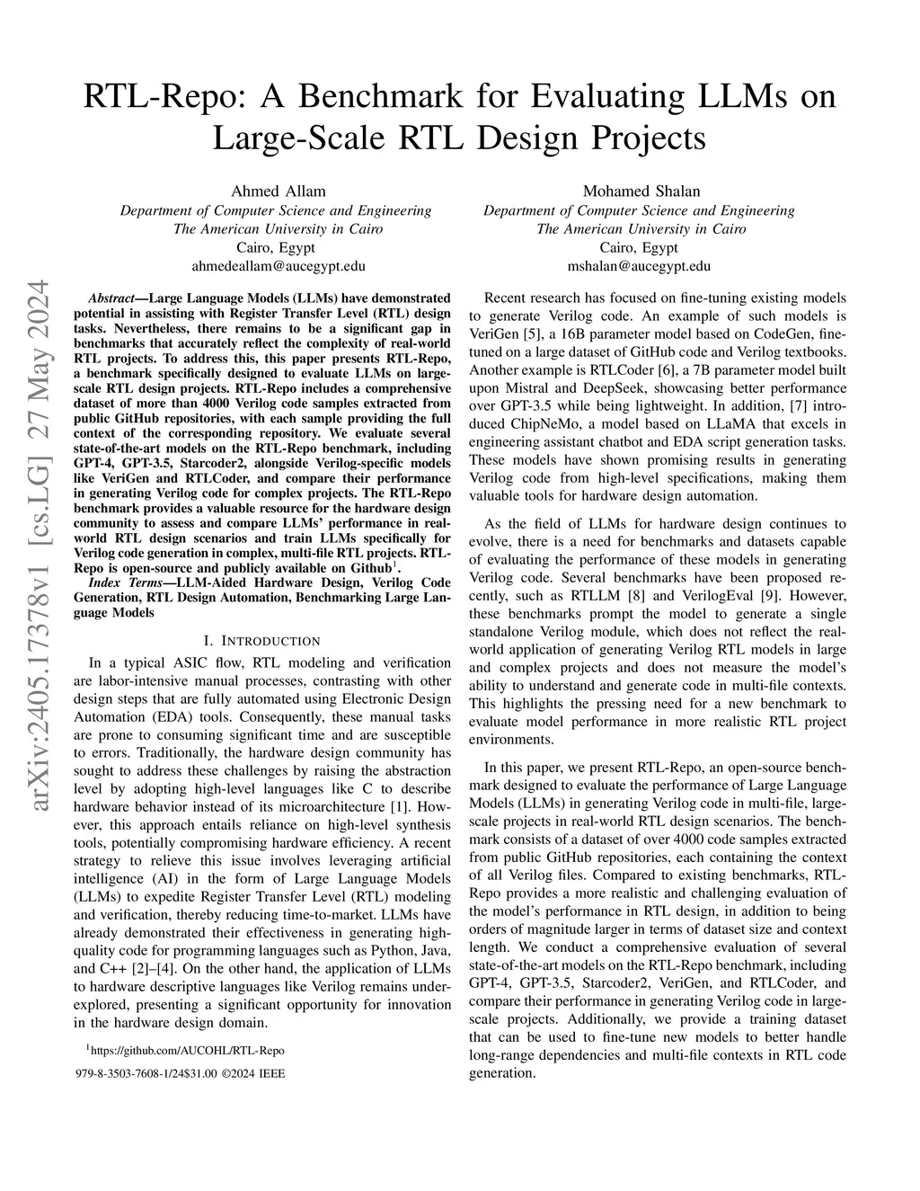 RTL-Repo: A Benchmark for Evaluating LLMs on Large-Scale RTL Design