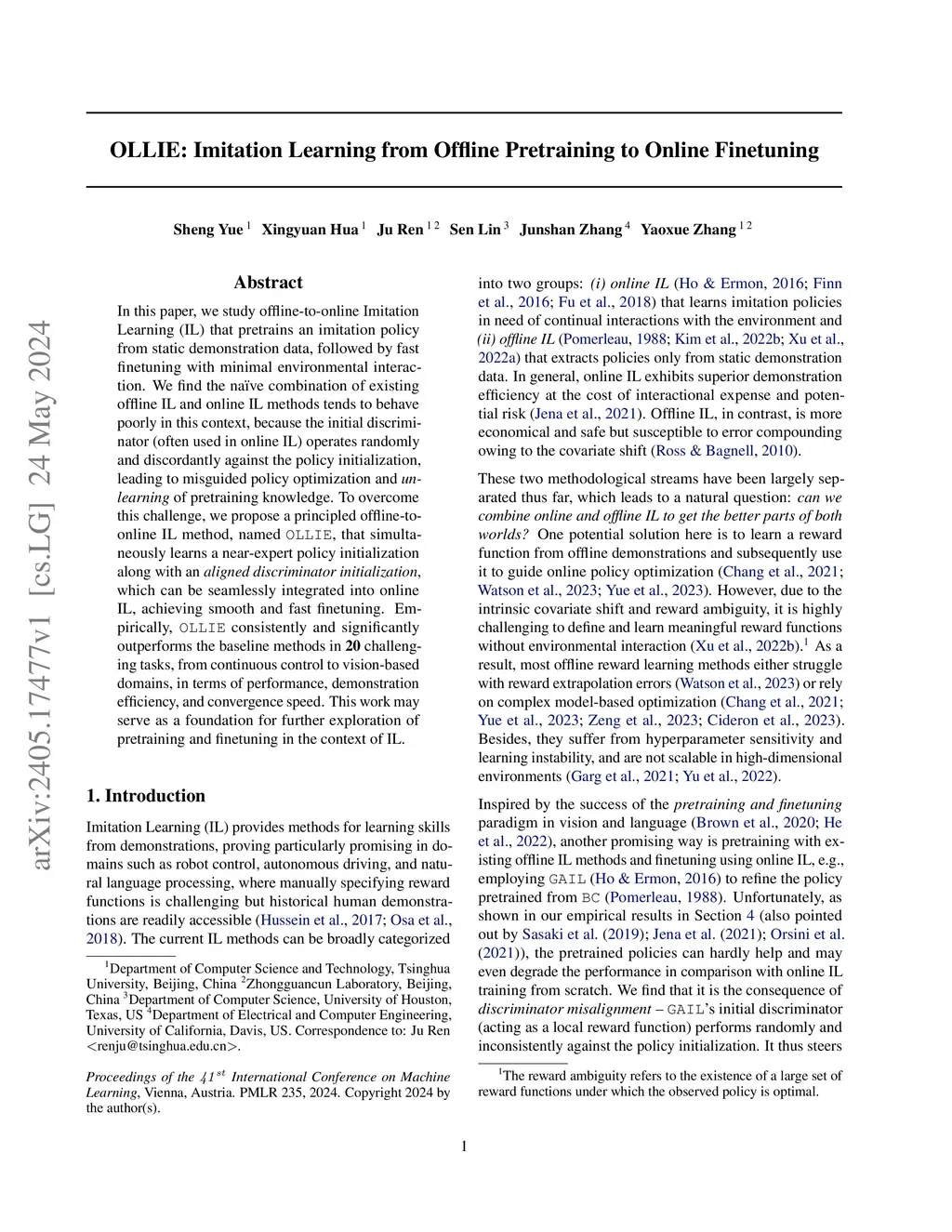 OLLIE: Imitation Learning from Offline Pretraining to Online Finetuning