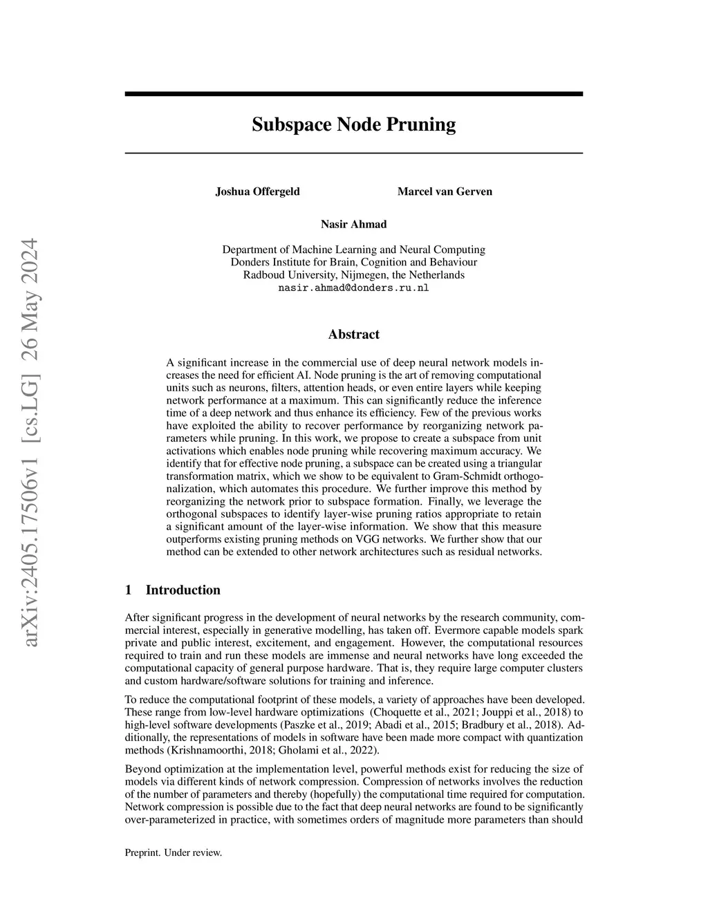 Subspace Node Pruning