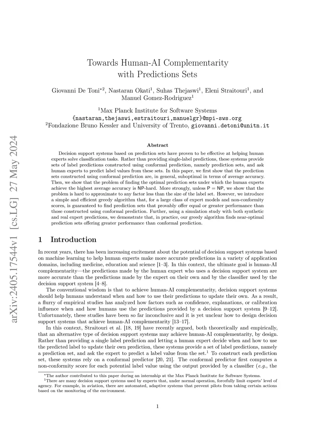 Decision support systems based on prediction sets have proven to be effective at helping human experts solve classification tasks. Rather than providing single-label predictions, these systems provide sets of label predictions constructed using conformal prediction, namely prediction sets, and ask human experts to predict label values from these sets. In this paper, we first show that the prediction sets constructed using conformal prediction are, in general, suboptimal in terms of average accuracy. Then, we show that the problem of finding the optimal prediction sets under which the human experts achieve the highest average accuracy is NP-hard. More strongly, unless P = NP, we show that the problem is hard to approximate to any factor less than the size of the label set. However, we introduce a simple and efficient greedy algorithm that, for a large class of expert models and non-conformity scores, is guaranteed to find prediction sets that provably offer equal or greater performance than those constructed using conformal prediction. Further, using a simulation study with both synthetic and real expert predictions, we demonstrate that, in practice, our greedy algorithm finds near-optimal prediction sets offering greater performance than conformal prediction.
