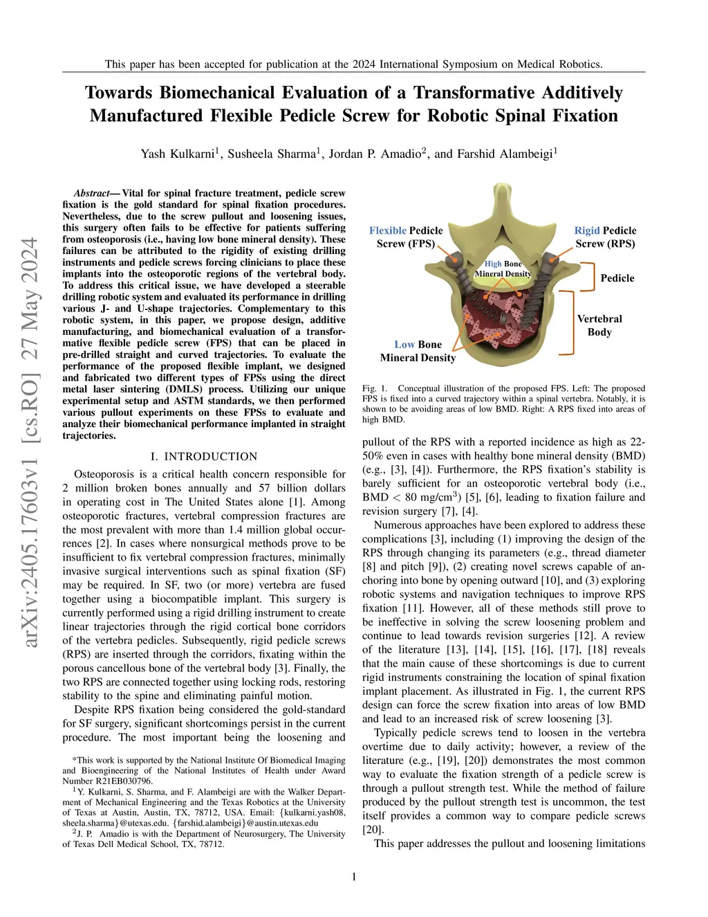 Manufactured Flexible Pedicle Screw for Robotic Spinal Fixation