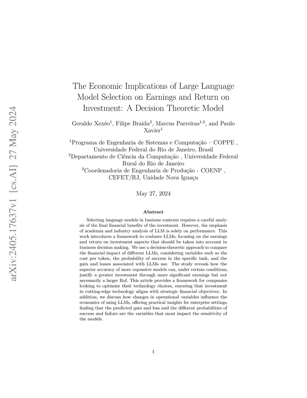 Selecting language models in business contexts requires a careful analysis of the final financial benefits of the investment. However, the emphasis of academia and industry analysis of LLM is solely on performance. This work introduces a framework to evaluate LLMs, focusing on the earnings and return on investment aspects that should be taken into account in business decision making. We use a decision-theoretic approach to compare the financial impact of different LLMs, considering variables such as the cost per token, the probability of success in the specific task, and the gain and losses associated with LLMs use. The study reveals how the superior accuracy of more expensive models can, under certain conditions, justify a greater investment through more significant earnings but not necessarily a larger RoI. This article provides a framework for companies looking to optimize their technology choices, ensuring that investment in cutting-edge technology aligns with strategic financial objectives. In addition, we discuss how changes in operational variables influence the economics of using LLMs, offering practical insights for enterprise settings, finding that the predicted gain and loss and the different probabilities of success and failure are the variables that most impact the sensitivity of the models.