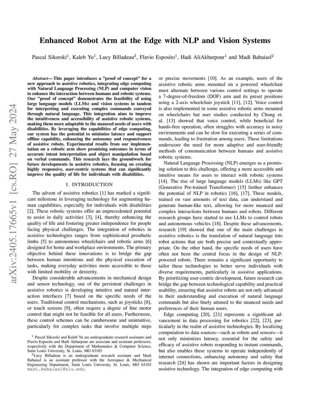 Enhanced Robot Arm at the Edge with NLP and Vision Systems