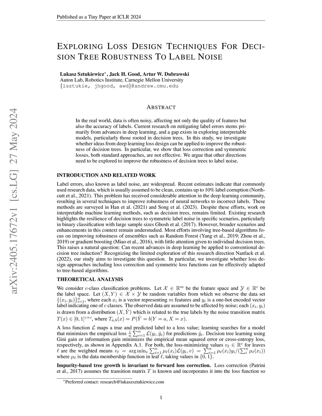 Exploring Loss Design Techniques For Decision Tree Robustness To Label