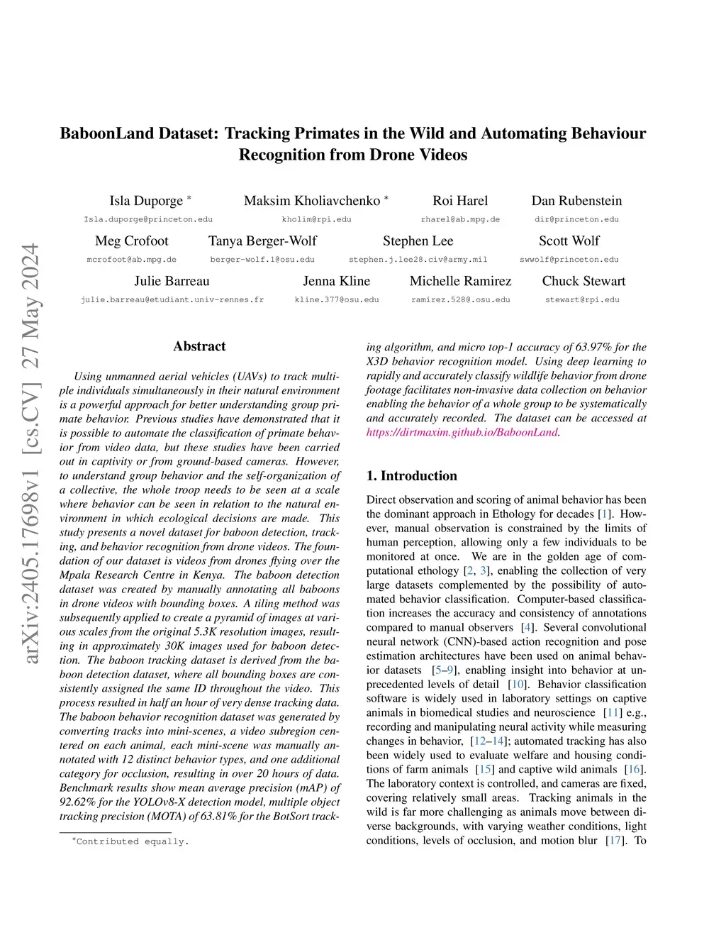 BaboonLand Dataset: Tracking Primates in the Wild and Automating Behaviour Recognition from Drone Videos