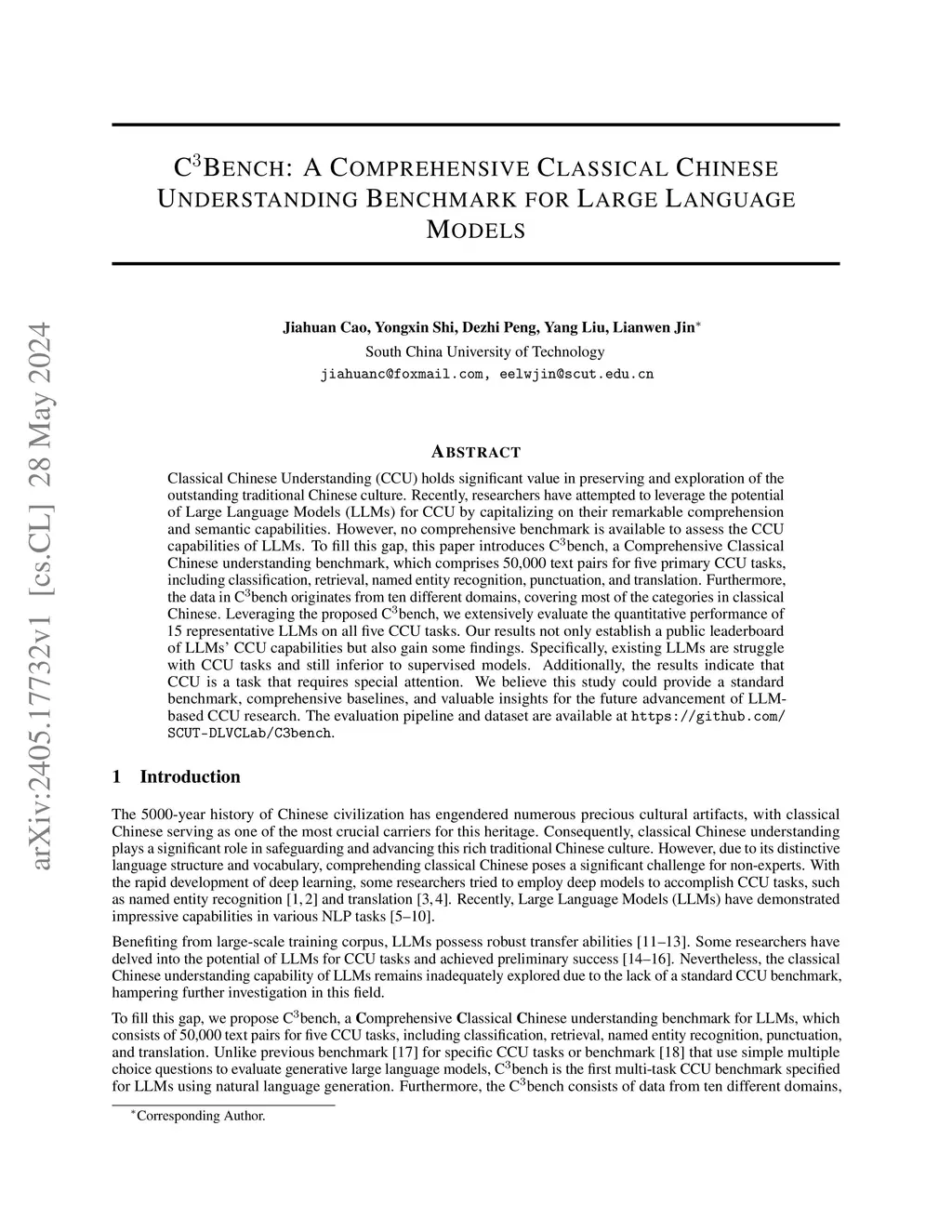 C3^{3}Bench: A Comprehensive Classical Chinese Understanding Benchmark for Large Language Models