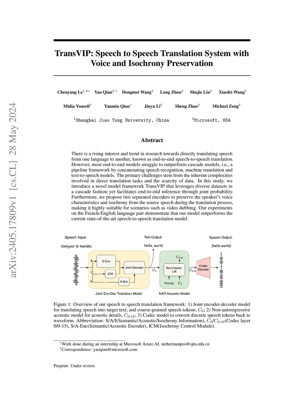 TransVIP: Speech to Speech Translation System with Voice and Isochrony