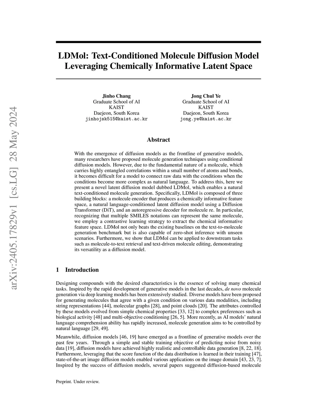 LDMol: A Text-to-Molecule Diffusion Model with Structurally Informative Latent Space Surpasses AR Models