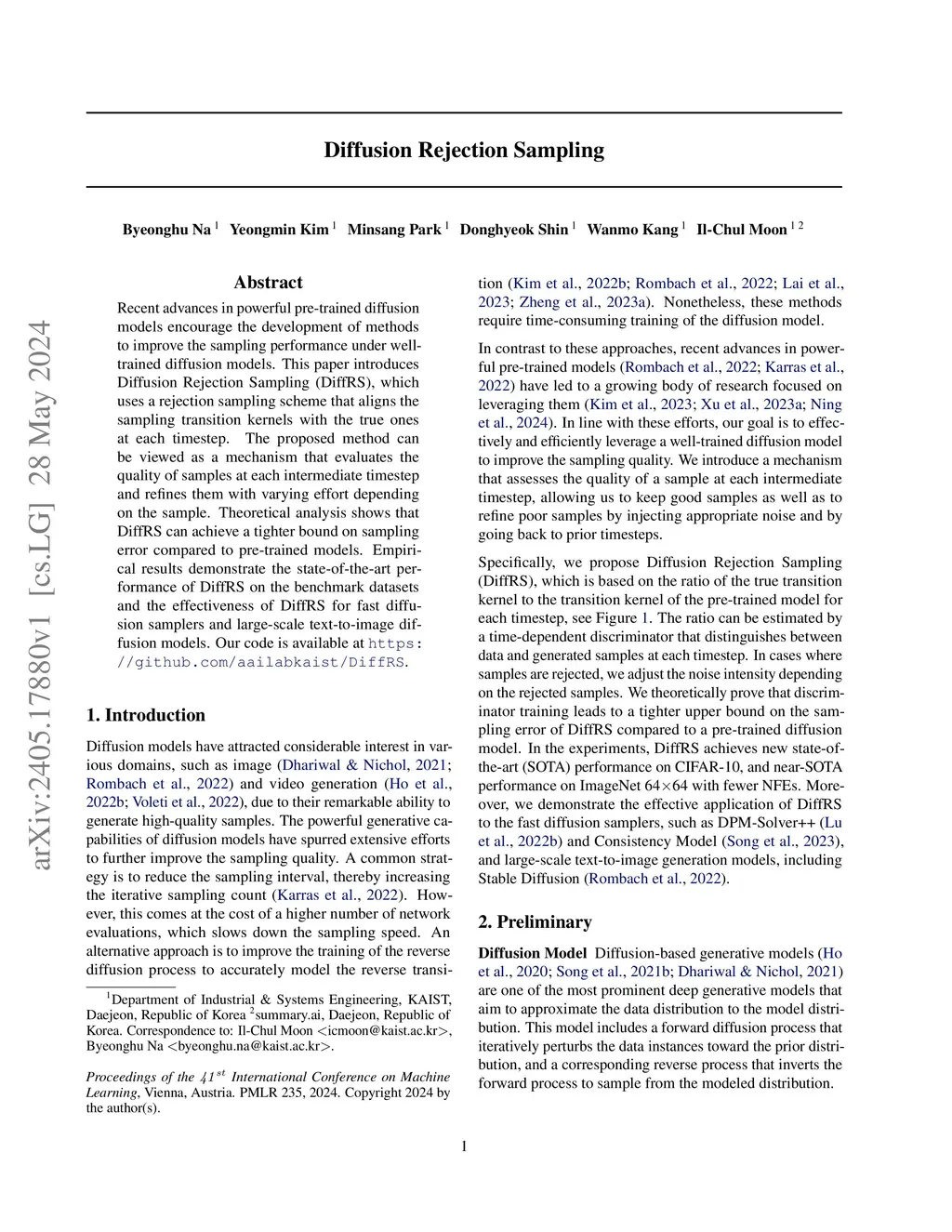 Recent advances in powerful pre-trained diffusion models encourage the development of methods to improve the sampling performance under well-trained diffusion models. This paper introduces Diffusion Rejection Sampling (DiffRS), which uses a rejection sampling scheme that aligns the sampling transition kernels with the true ones at each timestep. The proposed method can be viewed as a mechanism that evaluates the quality of samples at each intermediate timestep and refines them with varying effort depending on the sample. Theoretical analysis shows that DiffRS can achieve a tighter bound on sampling error compared to pre-trained models. Empirical results demonstrate the state-of-the-art performance of DiffRS on the benchmark datasets and the effectiveness of DiffRS for fast diffusion samplers and large-scale text-to-image diffusion models. Our code is available at https://github.com/aailabkaist/DiffRS.