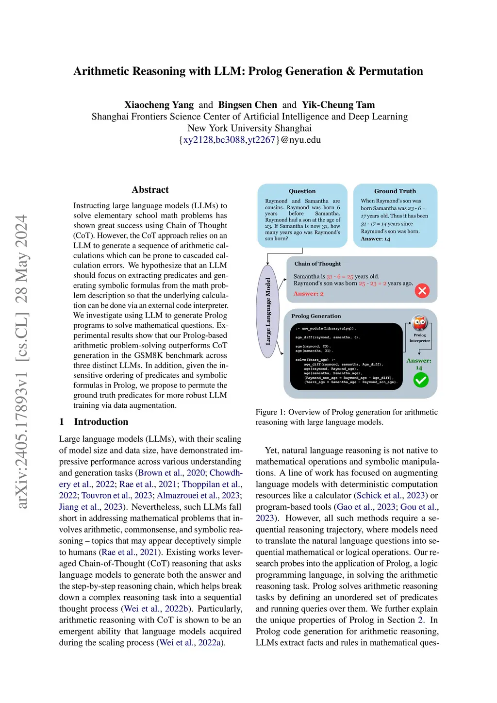 Arithmetic Reasoning with LLM: Prolog Generation & Permutation