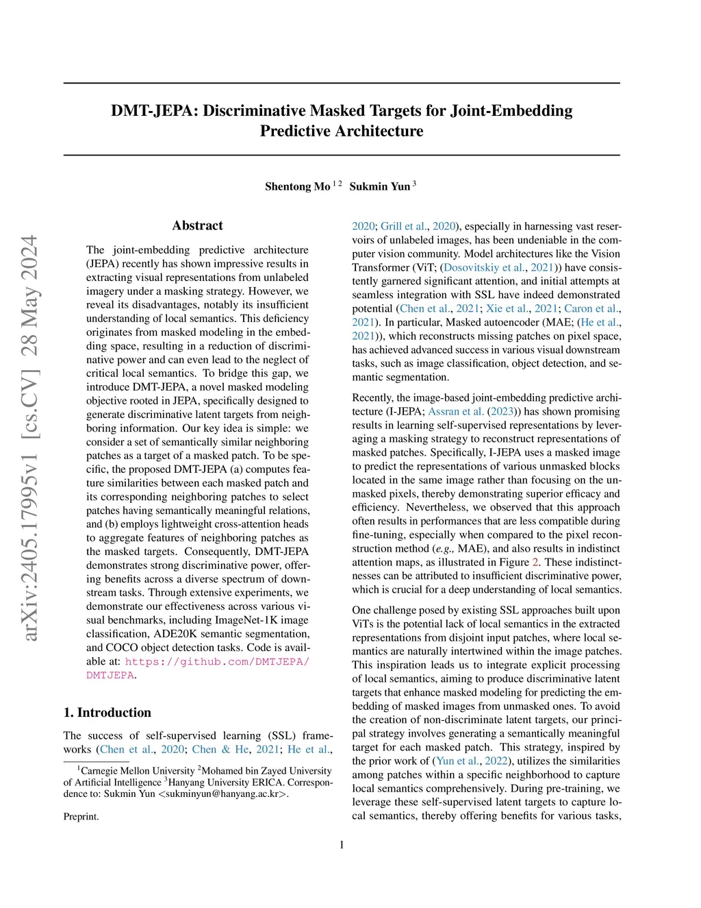 DMT-JEPA: Discriminative Masked Targets for Joint-Embedding Predictive