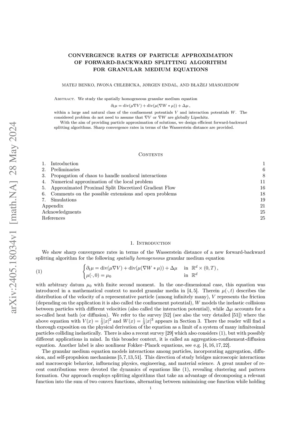 We study the spatially homogeneous granular medium equation \[\partial_t\mu=\rm{div}(\mu\nabla V)+\rm{div}(\mu(\nabla W \ast \mu))+\Delta\mu\,,\] within a large and natural class of the confinement potentials and interaction potentials . The considered problem do not need to assume that or are globally Lipschitz. With the aim of providing particle approximation of solutions, we design efficient forward-backward splitting algorithms. Sharp convergence rates in terms of the Wasserstein distance are provided.