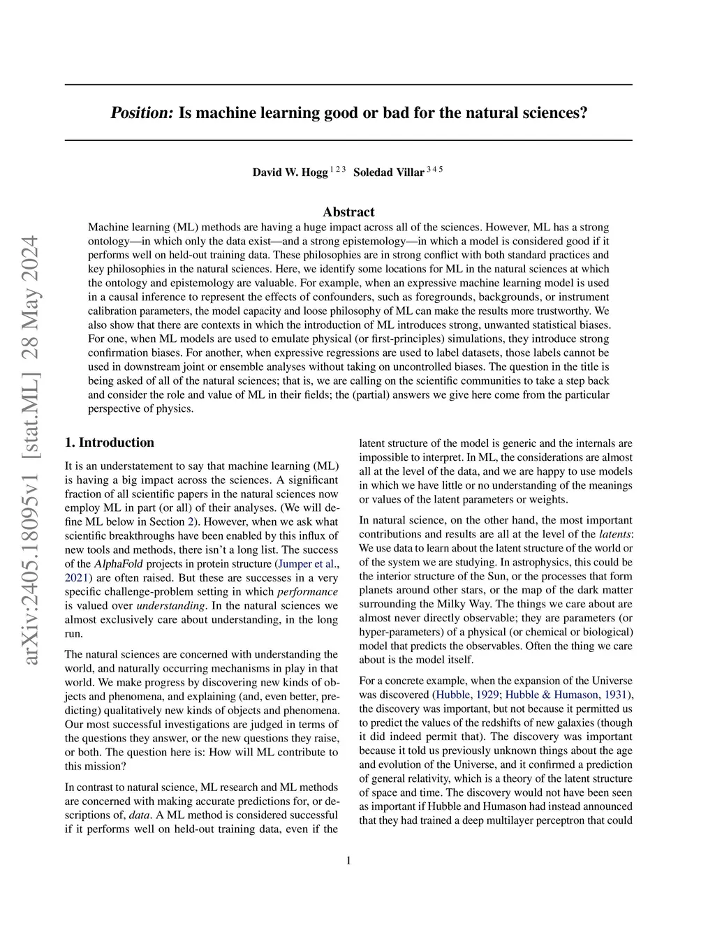 Machine learning (ML) methods are having a huge impact across all of the sciences. However, ML has a strong ontology - in which only the data exist - and a strong epistemology - in which a model is considered good if it performs well on held-out training data. These philosophies are in strong conflict with both standard practices and key philosophies in the natural sciences. Here we identify some locations for ML in the natural sciences at which the ontology and epistemology are valuable. For example, when an expressive machine learning model is used in a causal inference to represent the effects of confounders, such as foregrounds, backgrounds, or instrument calibration parameters, the model capacity and loose philosophy of ML can make the results more trustworthy. We also show that there are contexts in which the introduction of ML introduces strong, unwanted statistical biases. For one, when ML models are used to emulate physical (or first-principles) simulations, they amplify confirmation biases. For another, when expressive regressions are used to label datasets, those labels cannot be used in downstream joint or ensemble analyses without taking on uncontrolled biases. The question in the title is being asked of all of the natural sciences; that is, we are calling on the scientific communities to take a step back and consider the role and value of ML in their fields; the (partial) answers we give here come from the particular perspective of physics.