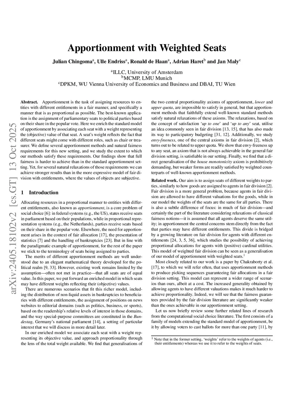 Apportionment with Weighted Seats