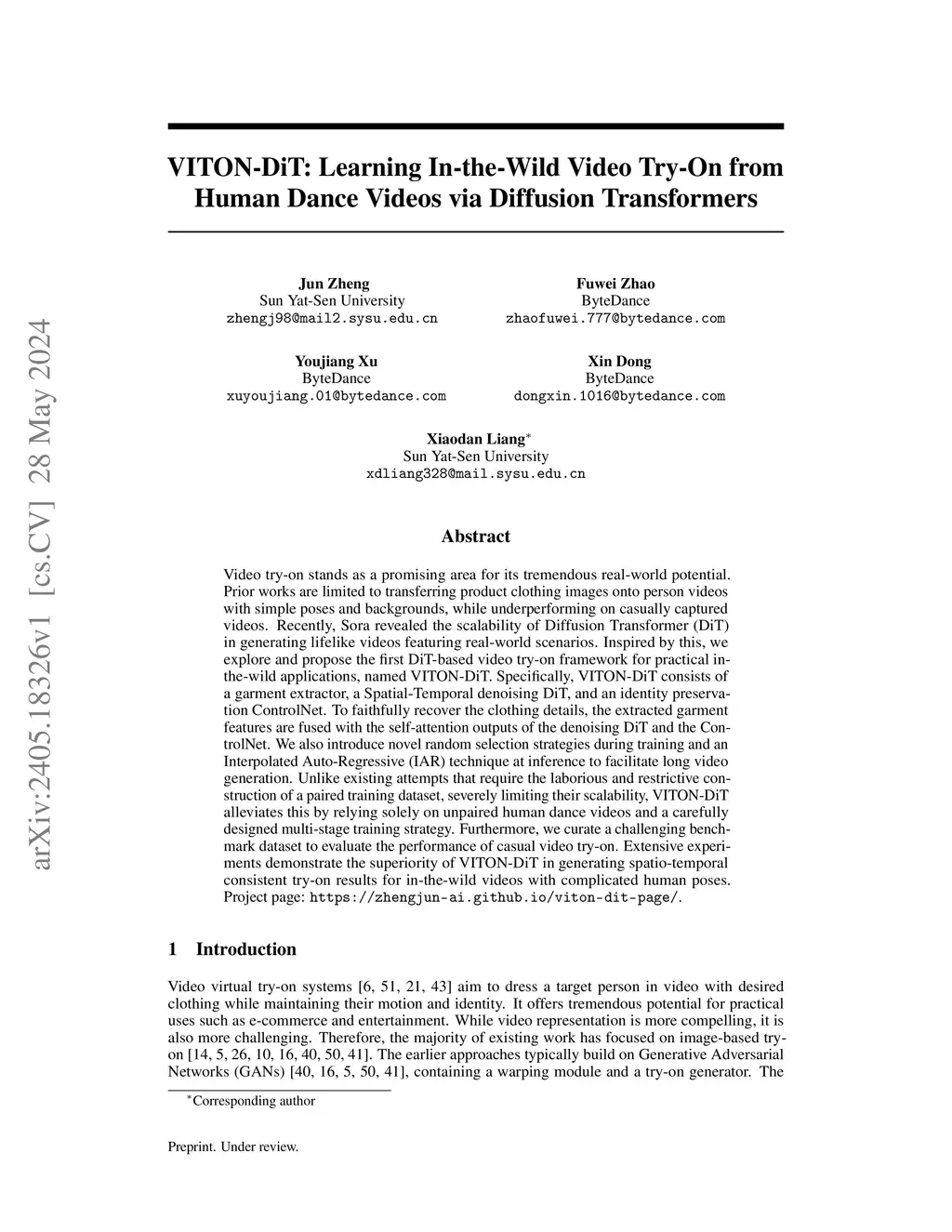 VITON-DiT: Learning In-the-Wild Video Try-On from Human Dance Videos via