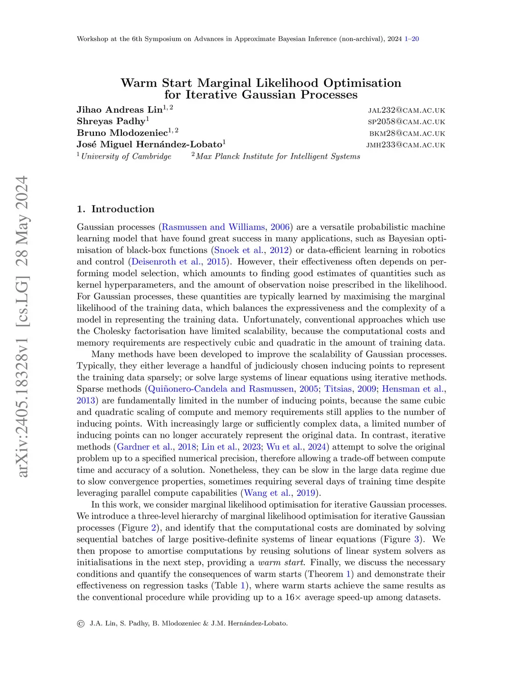 Gaussian processes are a versatile probabilistic machine learning model whose effectiveness often depends on good hyperparameters, which are typically learned by maximising the marginal likelihood. In this work, we consider iterative methods, which use iterative linear system solvers to approximate marginal likelihood gradients up to a specified numerical precision, allowing a trade-off between compute time and accuracy of a solution. We introduce a three-level hierarchy of marginal likelihood optimisation for iterative Gaussian processes, and identify that the computational costs are dominated by solving sequential batches of large positive-definite systems of linear equations. We then propose to amortise computations by reusing solutions of linear system solvers as initialisations in the next step, providing a . Finally, we discuss the necessary conditions and quantify the consequences of warm starts and demonstrate their effectiveness on regression tasks, where warm starts achieve the same results as the conventional procedure while providing up to a average speed-up among datasets.