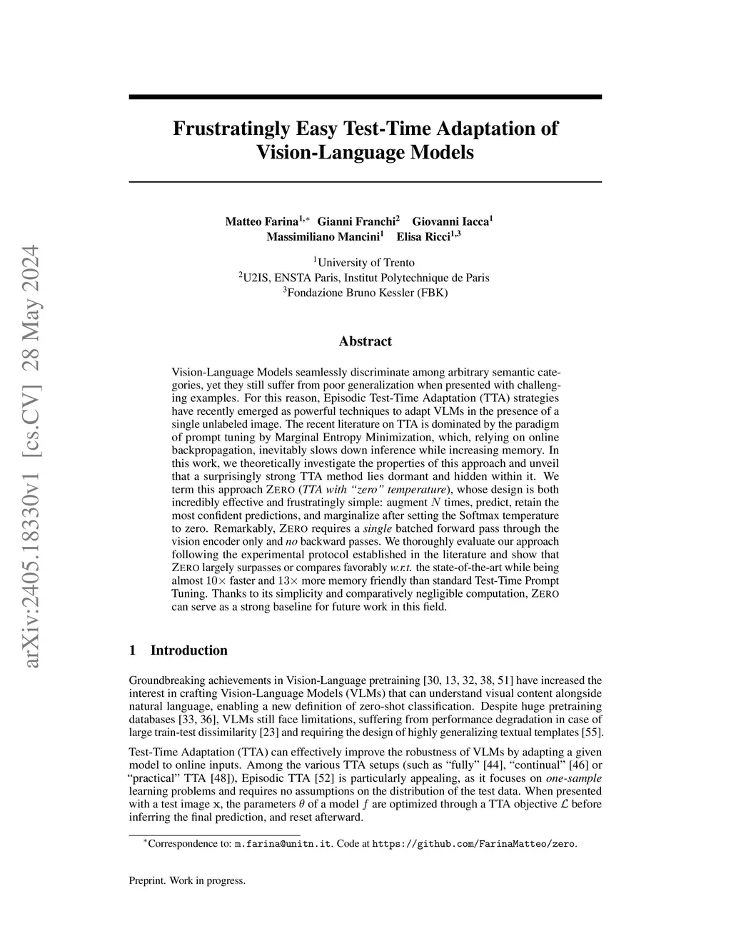 Vision-Language Models seamlessly discriminate among arbitrary semantic categories, yet they still suffer from poor generalization when presented with challenging examples. For this reason, Episodic Test-Time Adaptation (TTA) strategies have recently emerged as powerful techniques to adapt VLMs in the presence of a single unlabeled image. The recent literature on TTA is dominated by the paradigm of prompt tuning by Marginal Entropy Minimization, which, relying on online backpropagation, inevitably slows down inference while increasing memory. In this work, we theoretically investigate the properties of this approach and unveil that a surprisingly strong TTA method lies dormant and hidden within it. We term this approach ZERO (TTA with "zero" temperature), whose design is both incredibly effective and frustratingly simple: augment N times, predict, retain the most confident predictions, and marginalize after setting the Softmax temperature to zero. Remarkably, ZERO requires a single batched forward pass through the vision encoder only and no backward passes. We thoroughly evaluate our approach following the experimental protocol established in the literature and show that ZERO largely surpasses or compares favorably w.r.t. the state-of-the-art while being almost 10x faster and 13x more memory-friendly than standard Test-Time Prompt Tuning. Thanks to its simplicity and comparatively negligible computation, ZERO can serve as a strong baseline for future work in this field. The code is available at https://github.com/FarinaMatteo/zero.