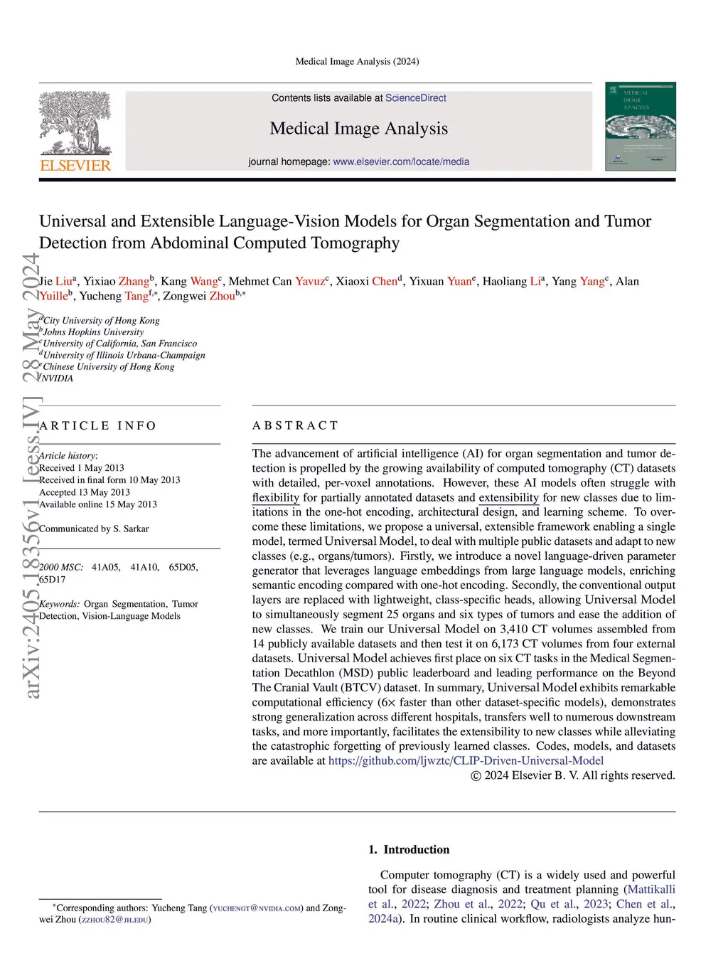 Universal and Extensible Language-Vision Models for Organ Segmentation