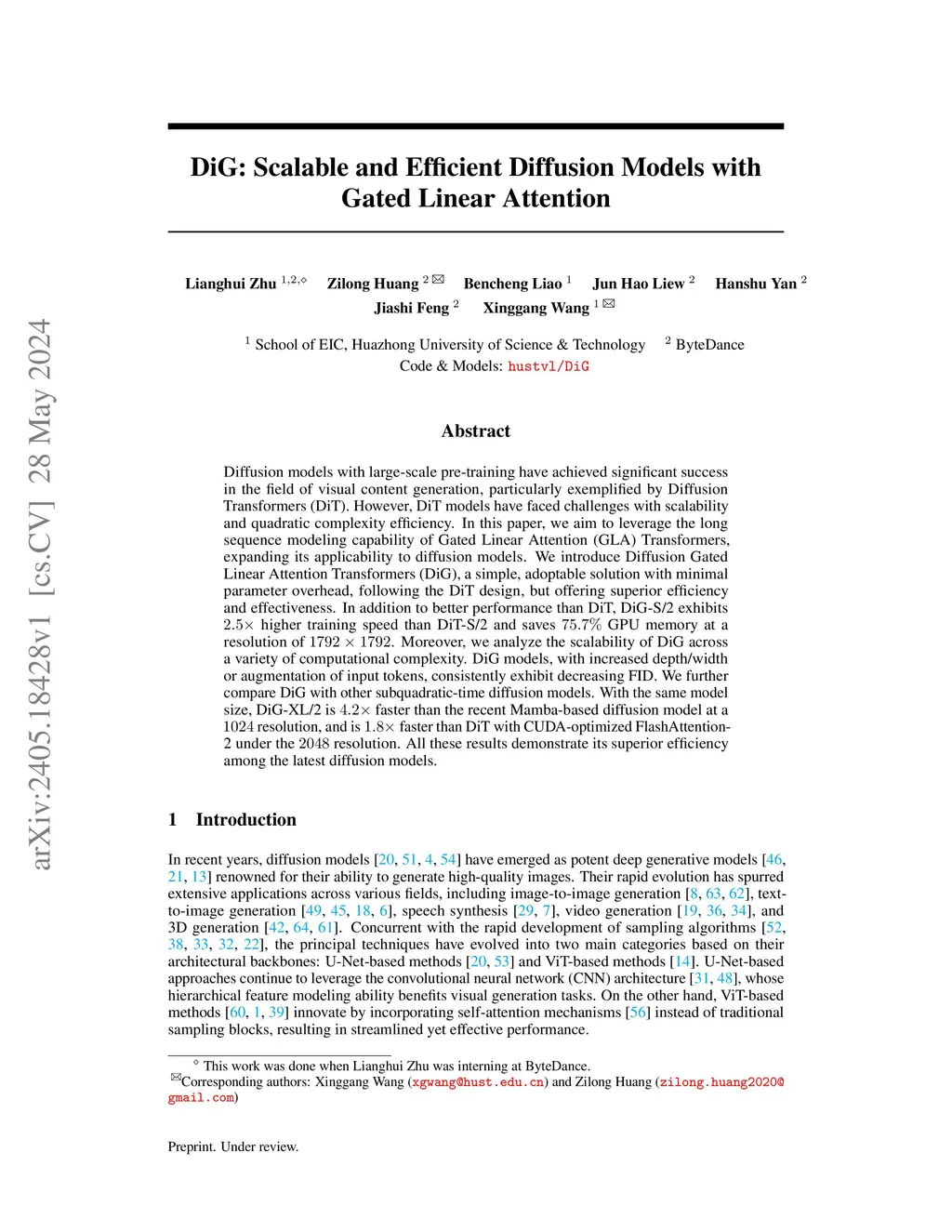 DiG: Scalable and Efficient Diffusion Models with Gated Linear Attention