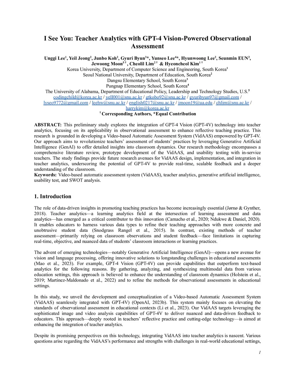 I See You: Teacher Analytics with GPT-4 Vision-Powered Observational