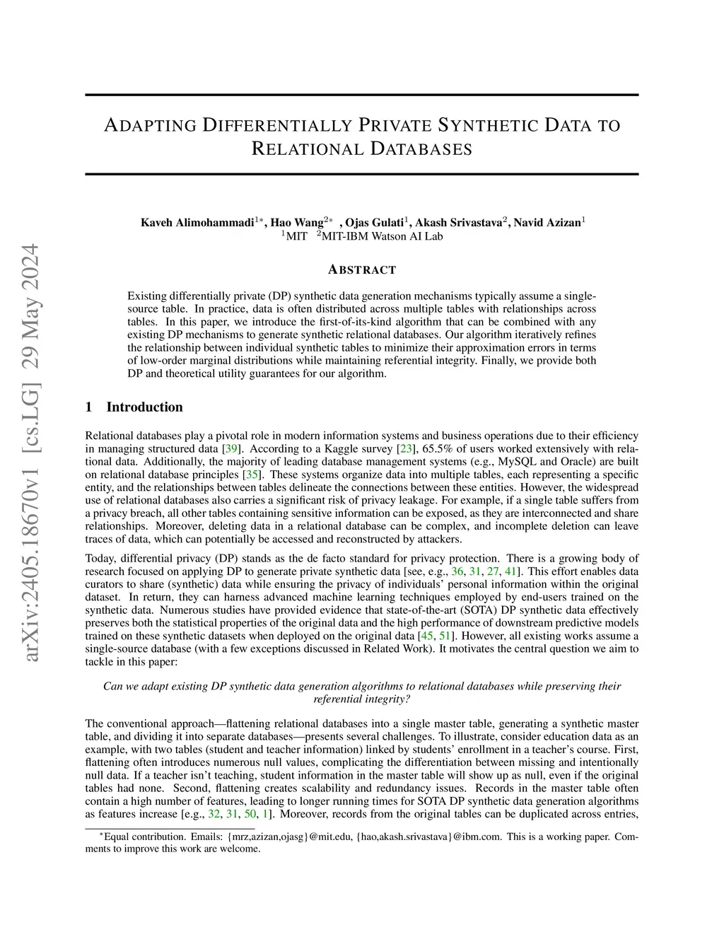 Differentially Private Synthetic Data Generation for Relational Databases