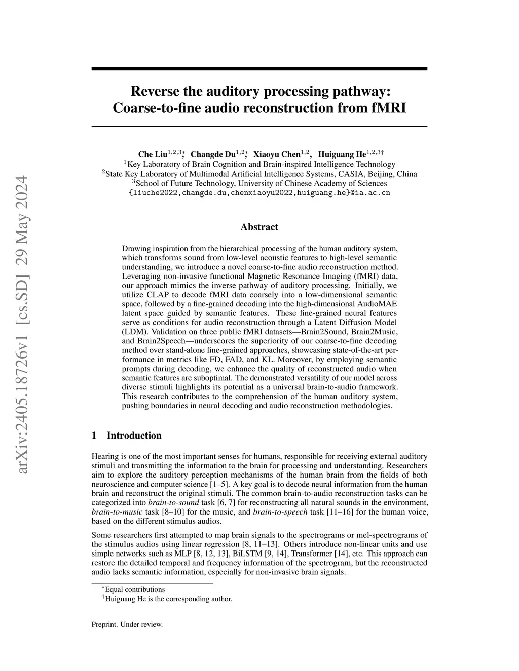 Drawing inspiration from the hierarchical processing of the human auditory system, which transforms sound from low-level acoustic features to high-level semantic understanding, we introduce a novel coarse-to-fine audio reconstruction method. Leveraging non-invasive functional Magnetic Resonance Imaging (fMRI) data, our approach mimics the inverse pathway of auditory processing. Initially, we utilize CLAP to decode fMRI data coarsely into a low-dimensional semantic space, followed by a fine-grained decoding into the high-dimensional AudioMAE latent space guided by semantic features. These fine-grained neural features serve as conditions for audio reconstruction through a Latent Diffusion Model (LDM). Validation on three public fMRI datasets-Brain2Sound, Brain2Music, and Brain2Speech-underscores the superiority of our coarse-to-fine decoding method over stand-alone fine-grained approaches, showcasing state-of-the-art performance in metrics like FD, FAD, and KL. Moreover, by employing semantic prompts during decoding, we enhance the quality of reconstructed audio when semantic features are suboptimal. The demonstrated versatility of our model across diverse stimuli highlights its potential as a universal brain-to-audio framework. This research contributes to the comprehension of the human auditory system, pushing boundaries in neural decoding and audio reconstruction methodologies.