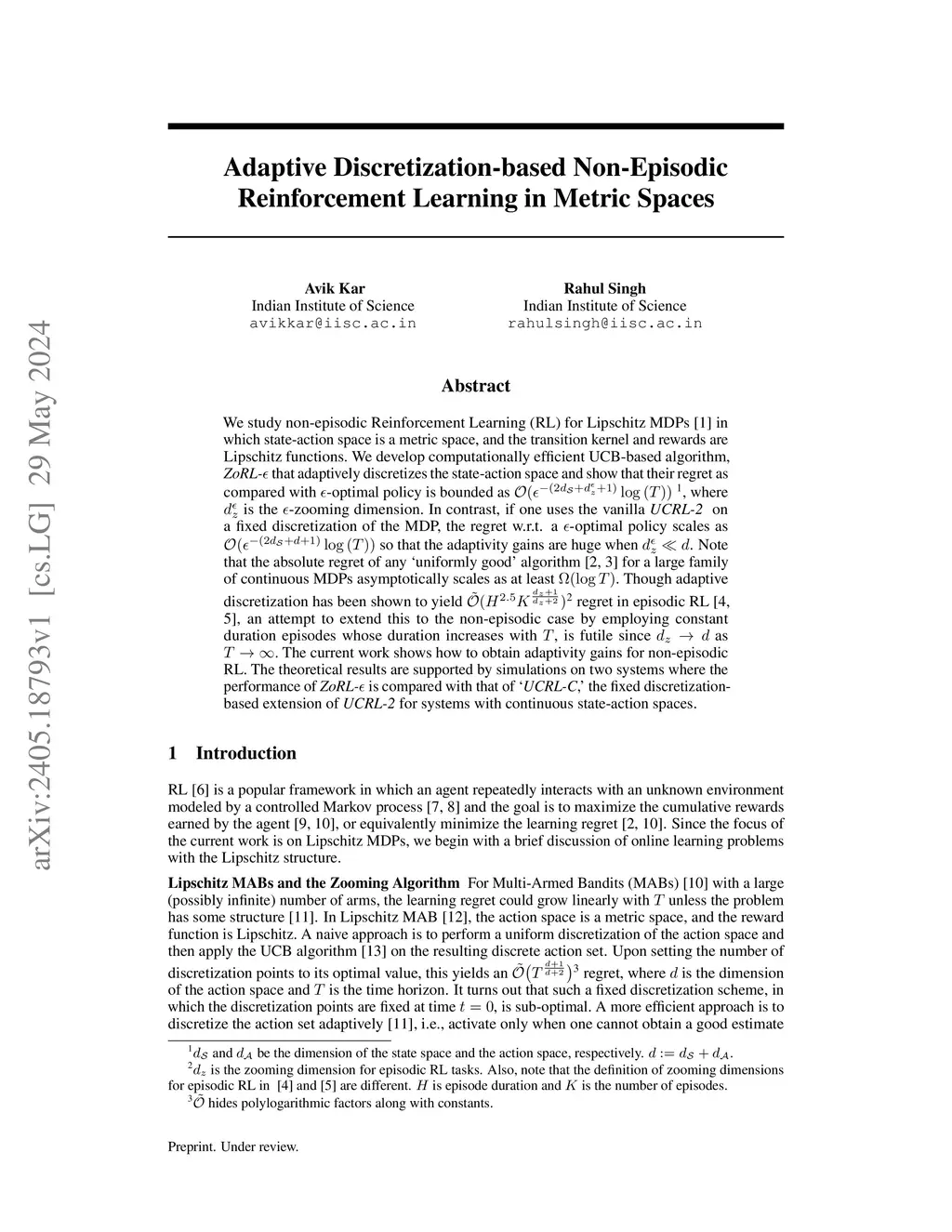 Policy Zooming: Adaptive Discretization-based Infinite-Horizon Average-Reward Reinforcement Learning