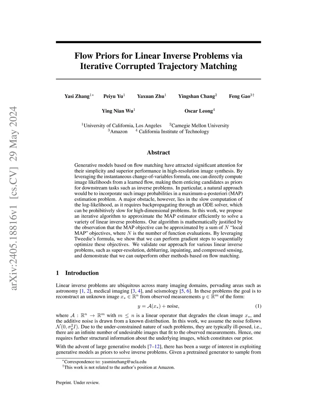 Flow Priors for Linear Inverse Problems via Iterative Corrupted Trajectory Matching