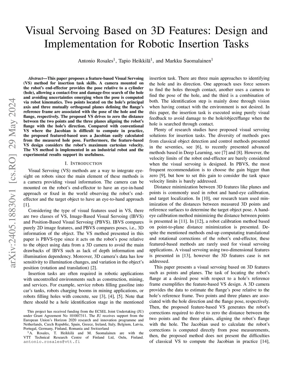 Visual Servoing Based on 3D Features: Design and Implementation for