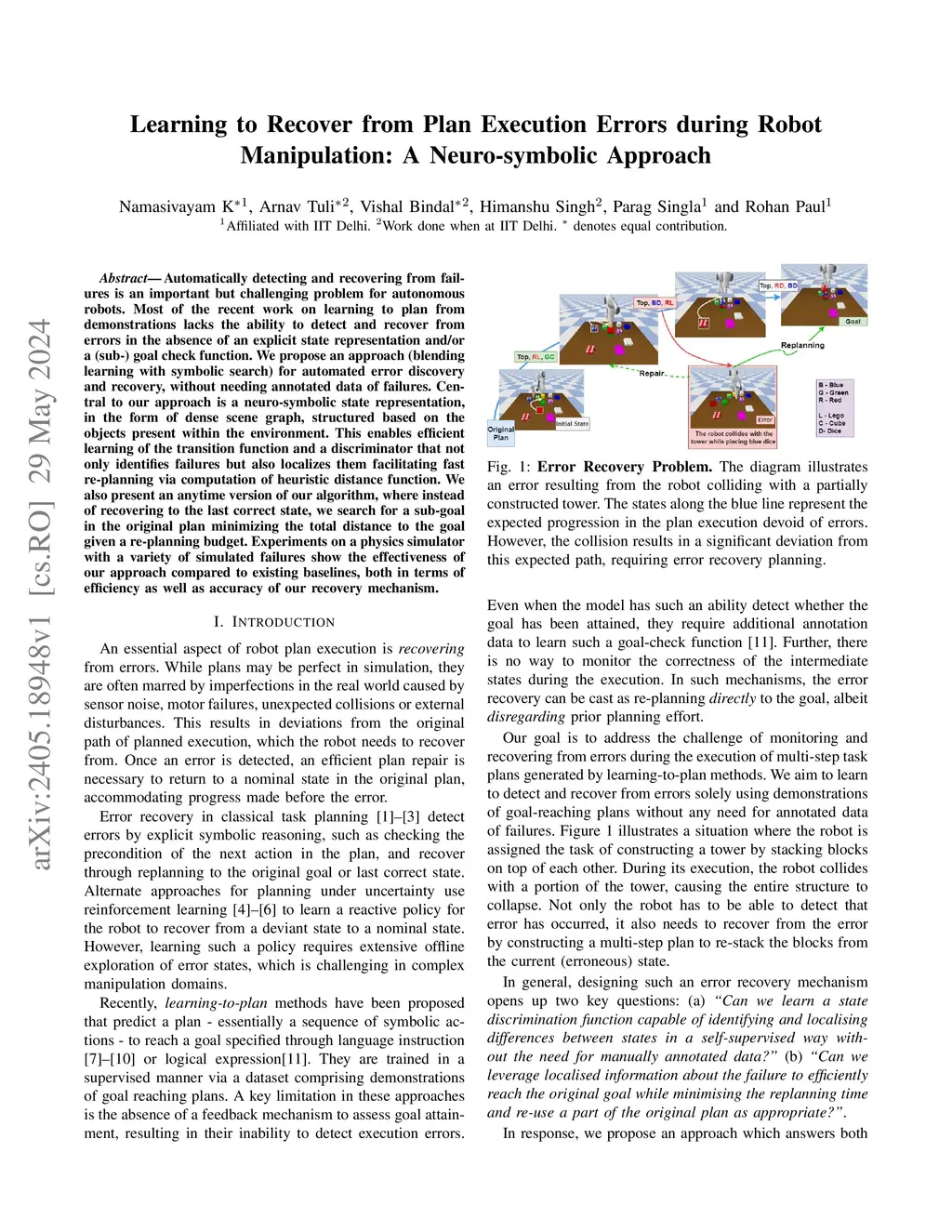 Learning to Recover from Plan Execution Errors during Robot