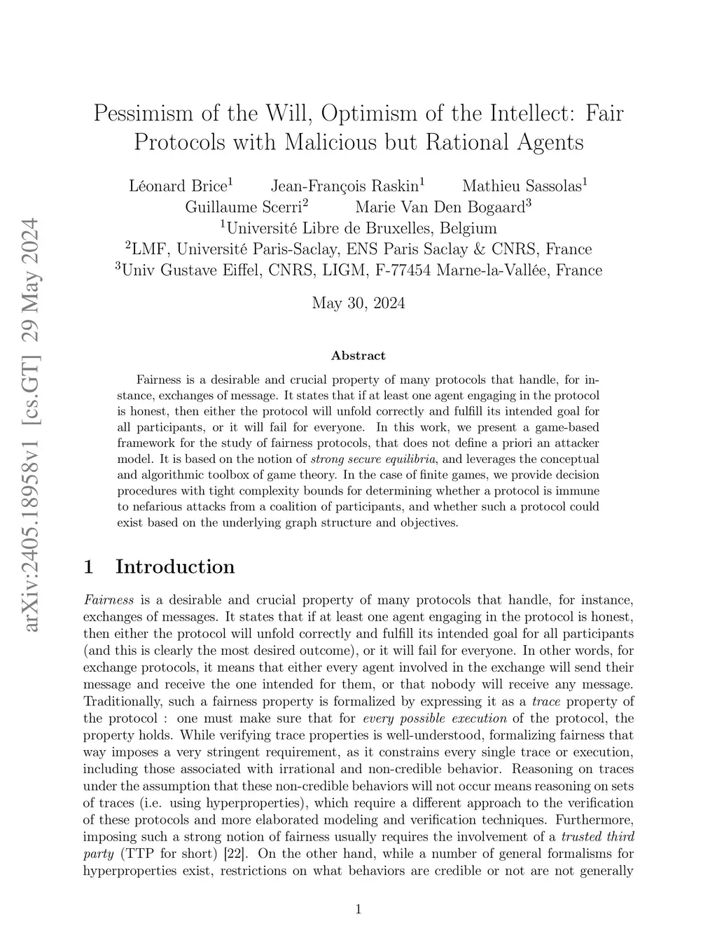 Fairness is a desirable and crucial property of many protocols that handle, for instance, exchanges of message. It states that if at least one agent engaging in the protocol is honest, then either the protocol will unfold correctly and fulfill its intended goal for all participants, or it will fail for everyone. In this work, we present a game-based framework for the study of fairness protocols, that does not define a priori an attacker model. It is based on the notion of strong secure equilibria, and leverages the conceptual and algorithmic toolbox of game theory. In the case of finite games, we provide decision procedures with tight complexity bounds for determining whether a protocol is immune to nefarious attacks from a coalition of participants, and whether such a protocol could exist based on the underlying graph structure and objectives.