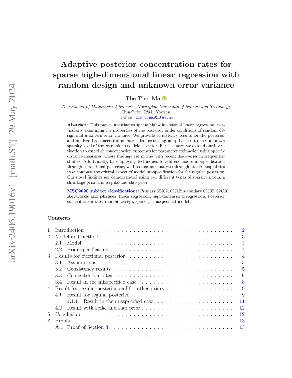 This paper investigates sparse high-dimensional linear regression, particularly examining the properties of the posterior under conditions of random design and unknown error variance. We provide consistency results for the posterior and analyze its concentration rates, demonstrating adaptiveness to the unknown sparsity level of the regression coefficient vector. Furthermore, we extend our investigation to establish concentration outcomes for parameter estimation using specific distance measures. These findings are in line with recent discoveries in frequentist studies. Additionally, by employing techniques to address model misspecification through a fractional posterior, we broaden our analysis through oracle inequalities to encompass the critical aspect of model misspecification for the regular posterior. Our novel findings are demonstrated using two different types of sparsity priors: a shrinkage prior and a spike-and-slab prior.