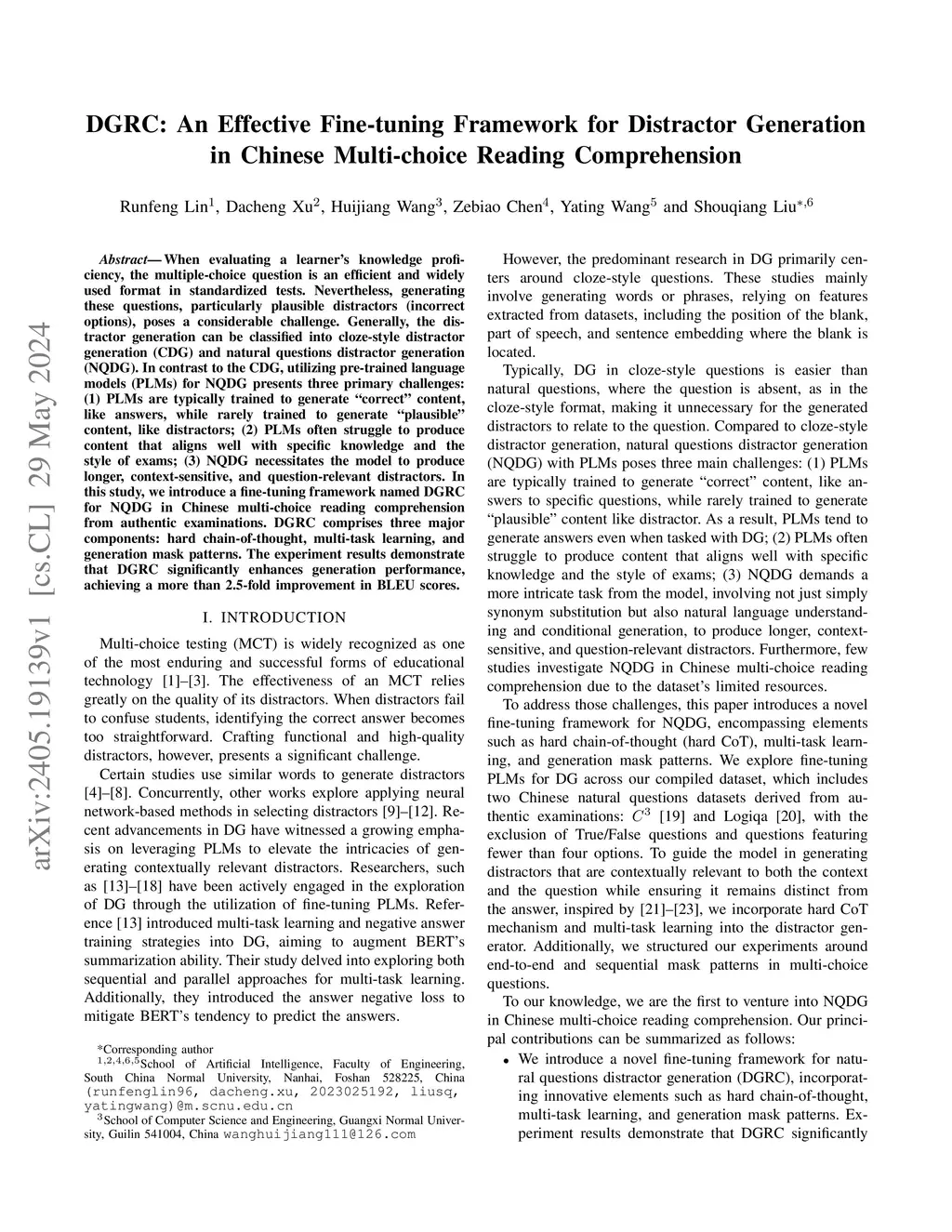 DGRC: An Effective Fine-tuning Framework for Distractor Generation in