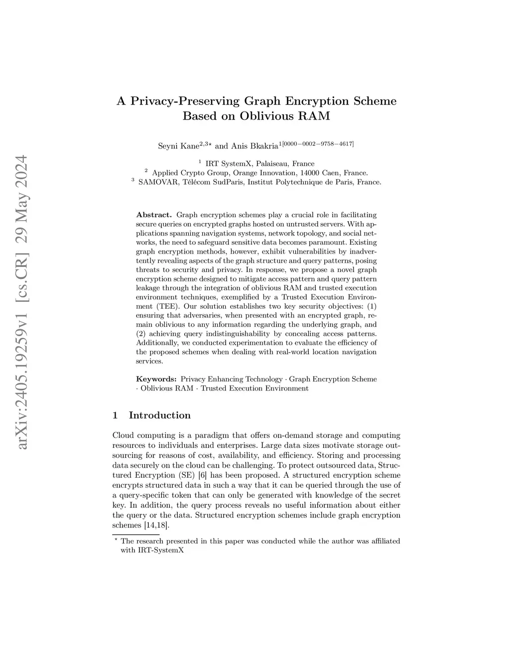A Privacy-Preserving Graph Encryption Scheme Based on Oblivious RAM