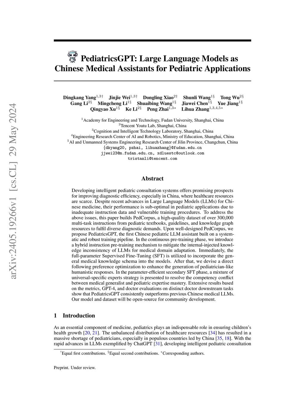 PediatricsGPT: Large Language Models as Chinese Medical Assistants for