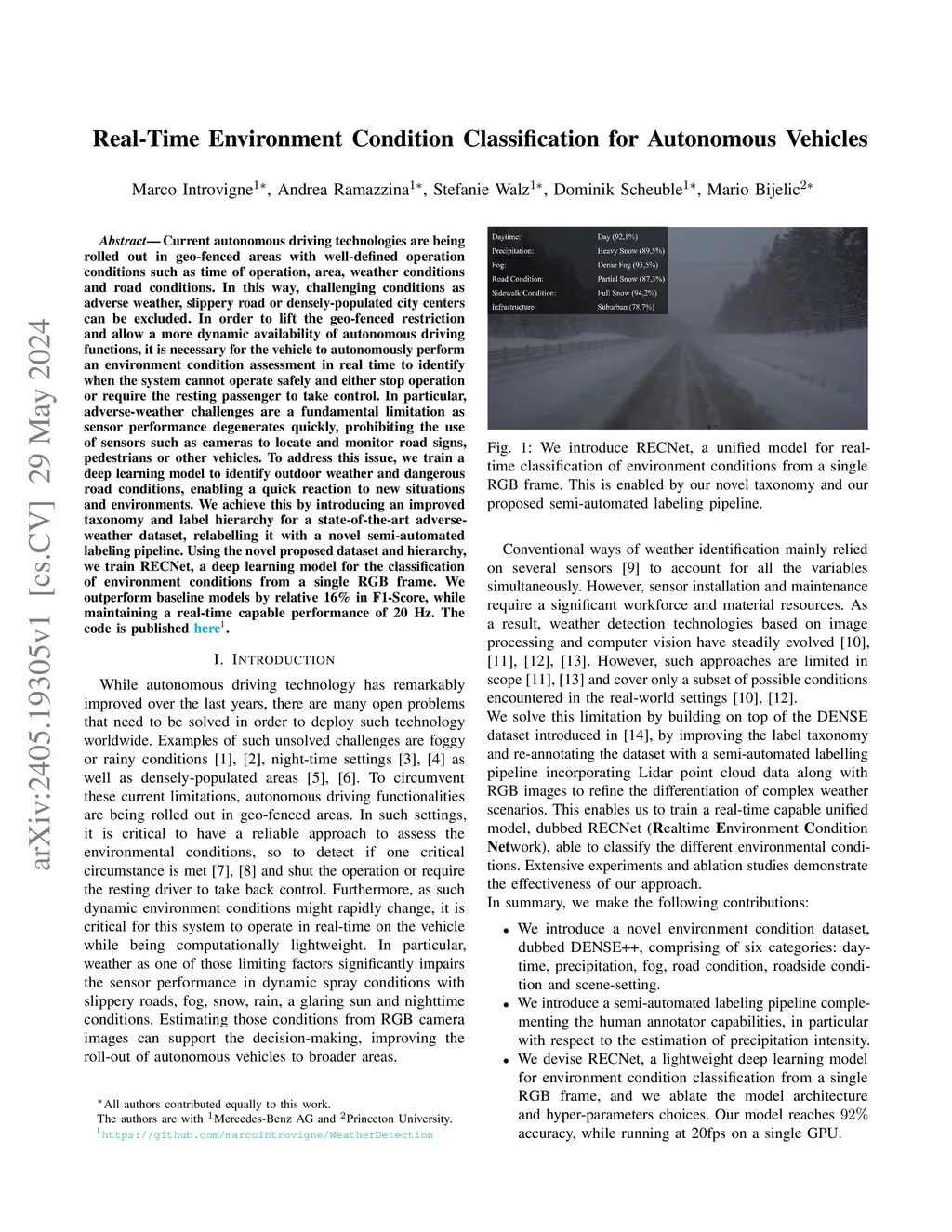 Real-Time Environment Condition Classification for Autonomous Vehicles