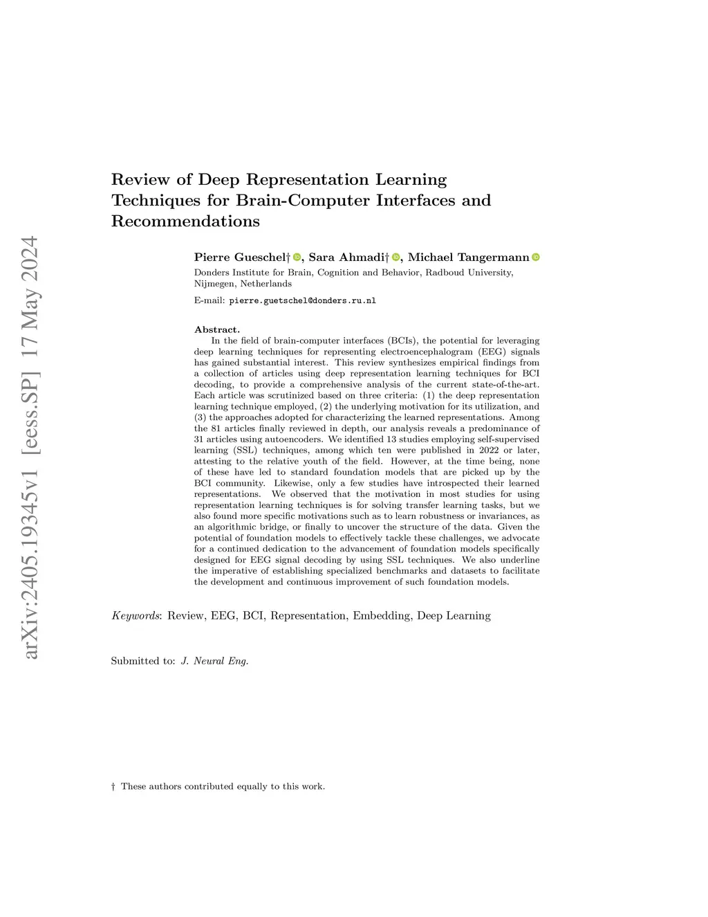 Review of Deep Representation Learning Techniques for Brain-Computer