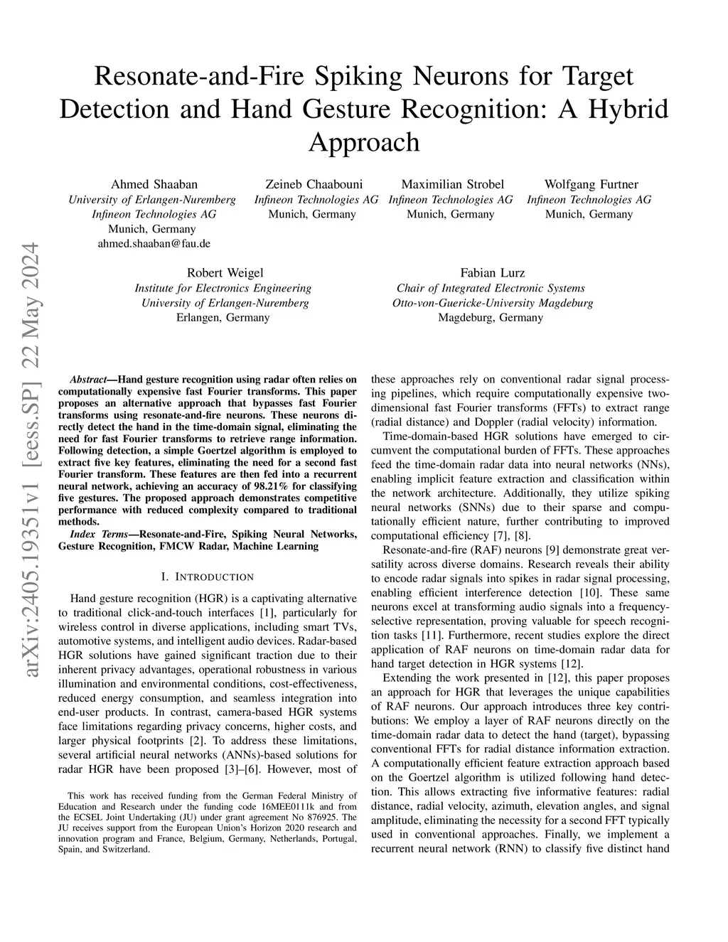 Resonate-and-Fire Spiking Neurons for Target Detection and Hand Gesture